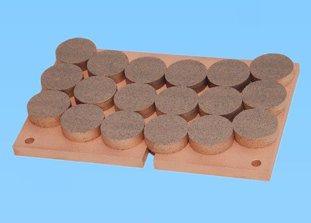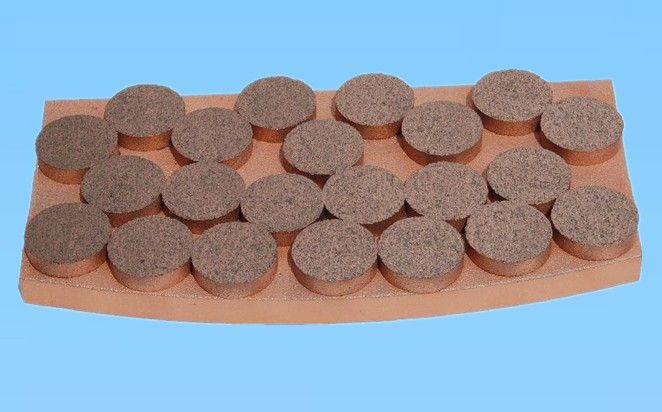FRK980铜基粉末冶金风电刹车片是保定市福瑞客特种陶瓷制品制造有限公司自主研发的一种摩擦材料,其性能类似于国外米巴公司MD550摩擦材料,FRK980是以铜粉为基体,以特种耐磨合金颗粒为摩擦组元,通过特殊烧结工艺制成的摩擦材料,在高温下(700℃)具有摩擦系数稳定,磨损小,对制动盘损伤小,易安装,使用安全等特点,可满足风力发电机、高速列车等工程机械的重载高速制动要求.目前国内外已大量使用。以下是我司生产的产品及性能指标,也可根据客户要求的规格尺寸进行加工。